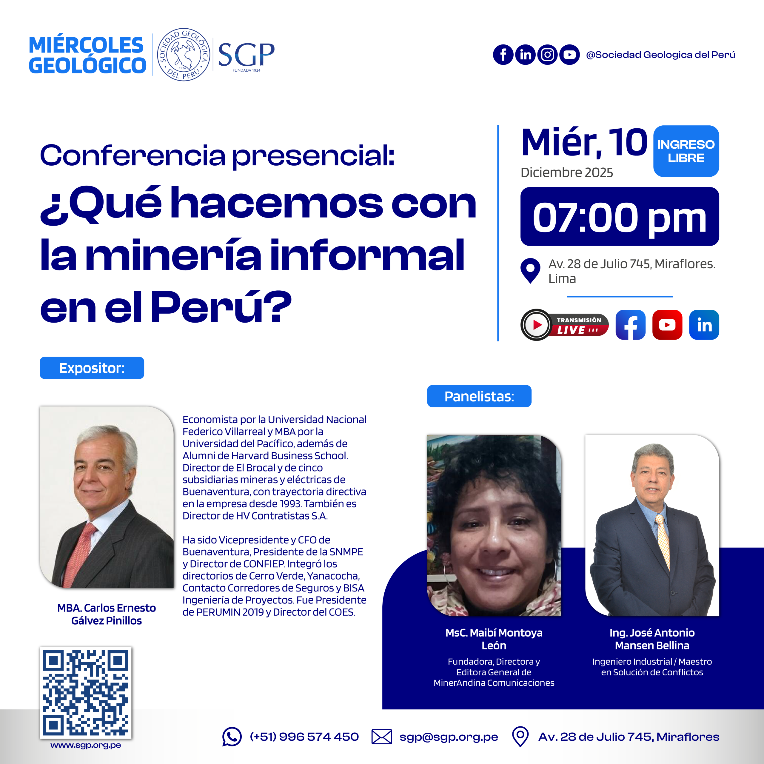 Miércoles Geológico, 10 de diciembre 2025 7:00 PM | “¿Qué hacemos con la minería informal en el Perú?”.