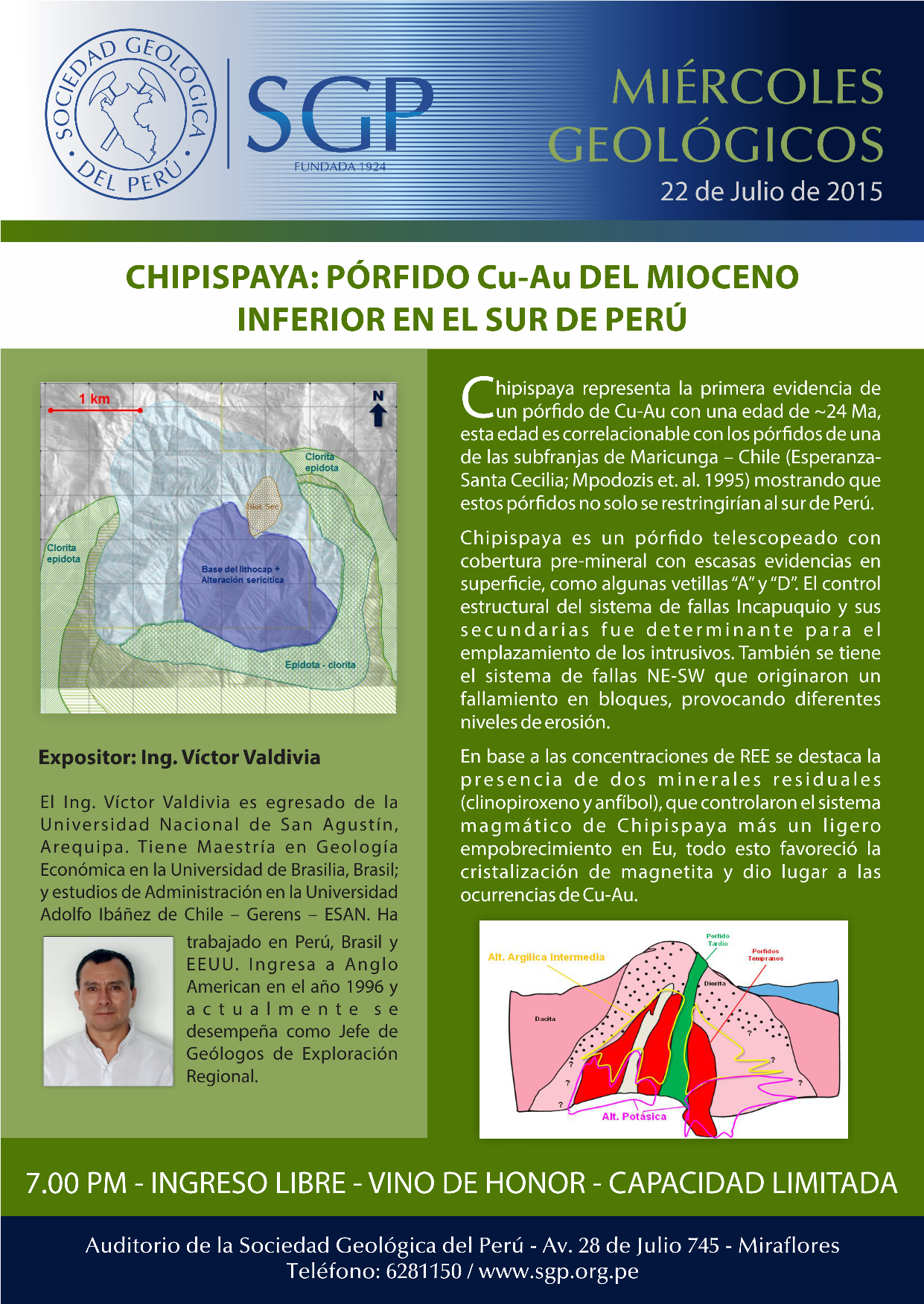 Miércoles Geológico: “CHIPISPAYA: PÓRFIDO CU-AU DEL MIOCENO INFERIOR EN EL SUR DEL PERÚ”