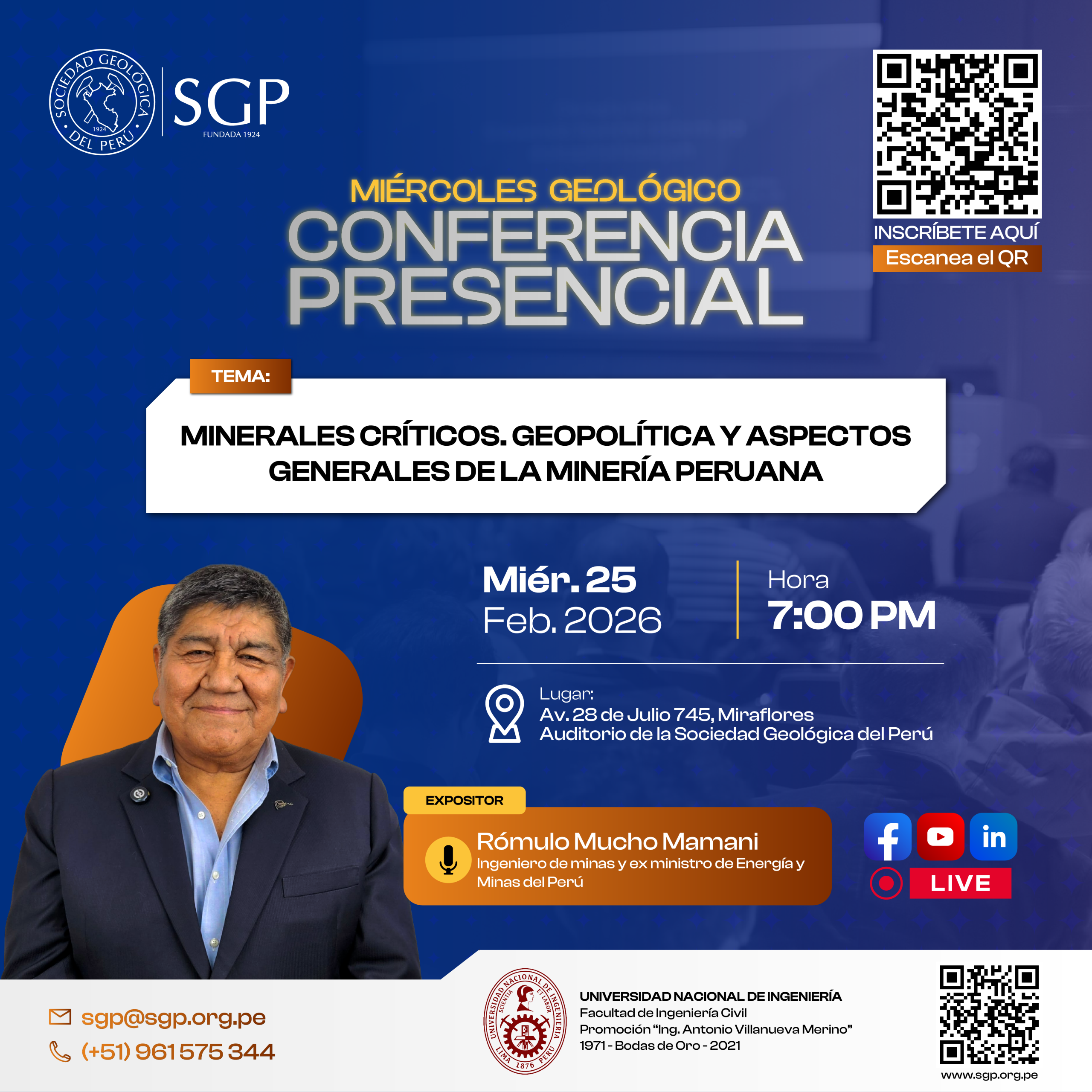 📍 Lugar: Auditorio de la Sociedad Geológica del Perú